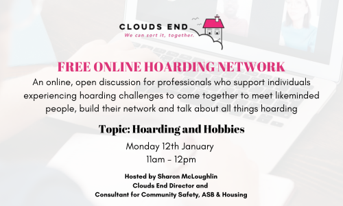 The Hoarding Network is a free to attend session that takes place monthly for practitioners who work within hoarding support, it is an opportunity to discuss the professional practices relating to client care.